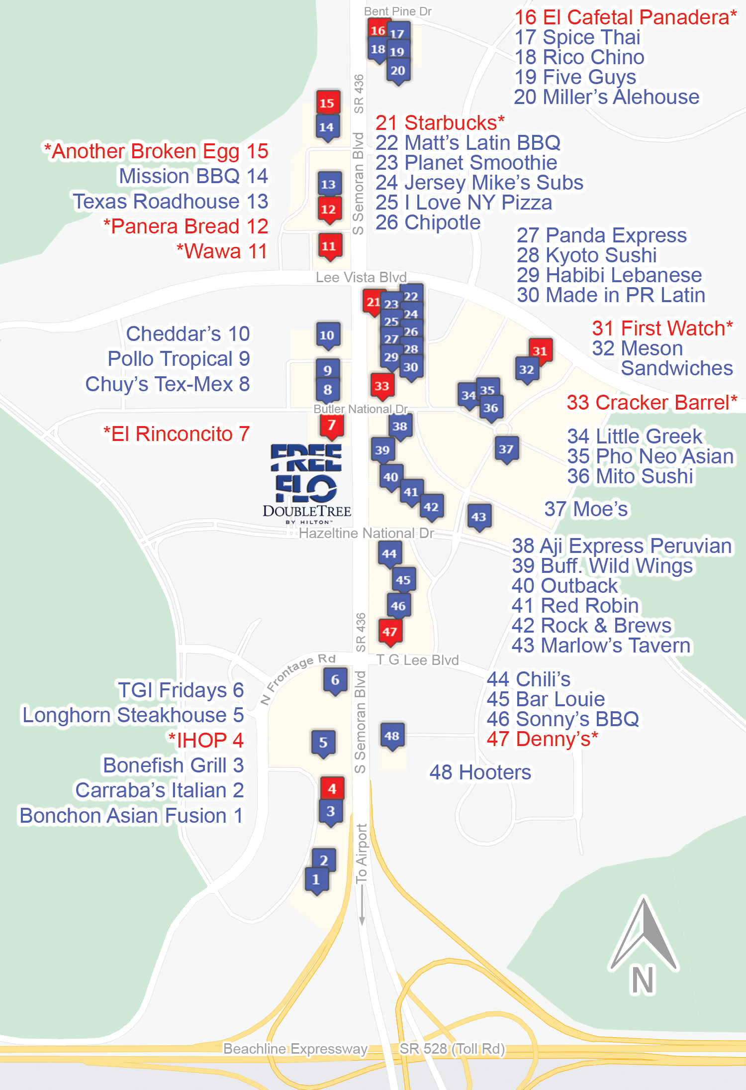 Area Map of Nearby Restaurants - FREEFLO 2023